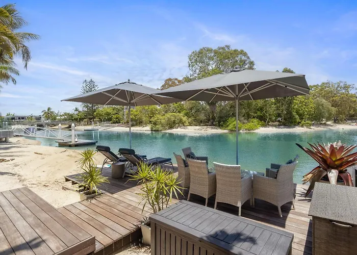 Deze 4-slaapkamer Luxury Retreat With Private Beach & Jetty Noosa Heads villa nodigt gasten uit om te genieten van een terras mey een zwembad en ligt op 6 minuten lopen van Noosa Longboards. Het vakantiehuis heeft een privézwembad en ligt binnen een paar straten van de Nissarana Galleries.